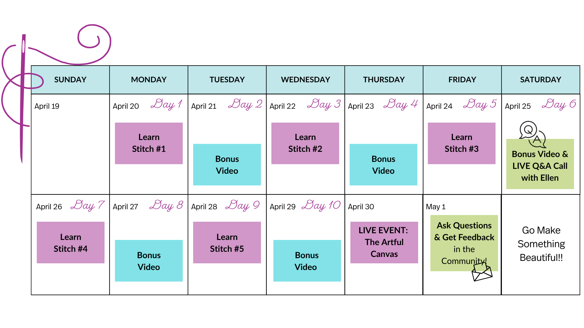 Along the way, you'll enjoy daily videos, a live Q&A session, and a warm, welcoming community of fellow stitchers cheering you on.