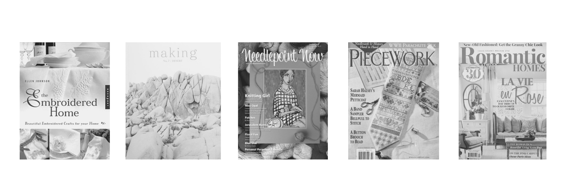 I've written articles and designed projects for a variety of needlework magazines and I'm the author of The Embroidered Home.